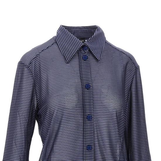 엠포리오 아르마니 셔츠 EMPORIO ARMANI 스트라이프 니트 ICON 여성 블루