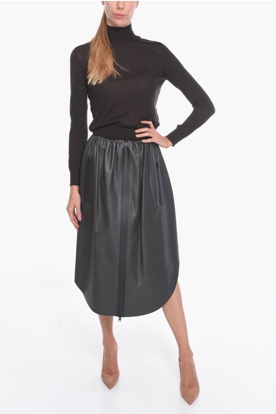 보테가베네타 집업 가죽 롱 스커트 610370VKLP01422 Anthracite