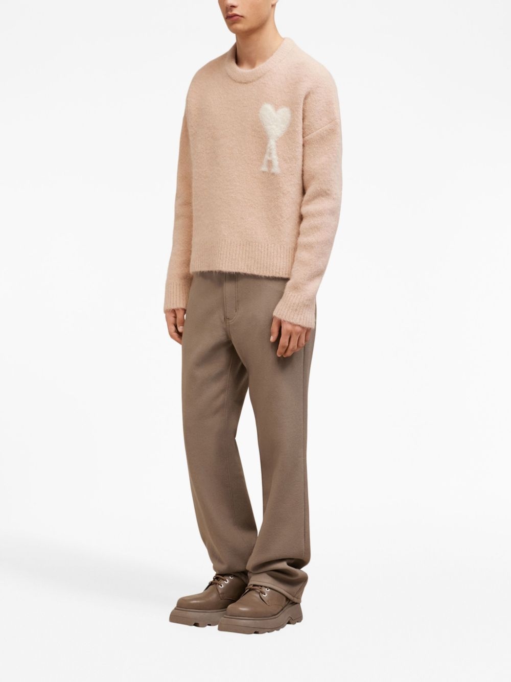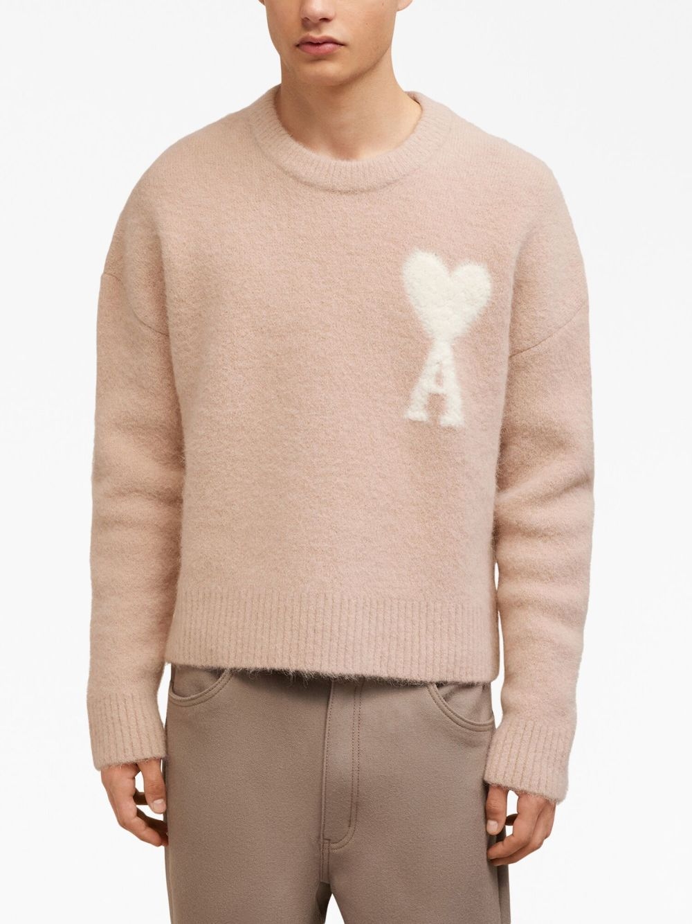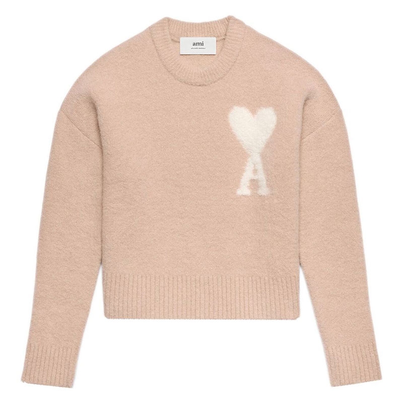 아미 / 남성 빅하트 로고 라운드넥 울 니트 앤티크 핑크 UKS025 KN0032 685 STK